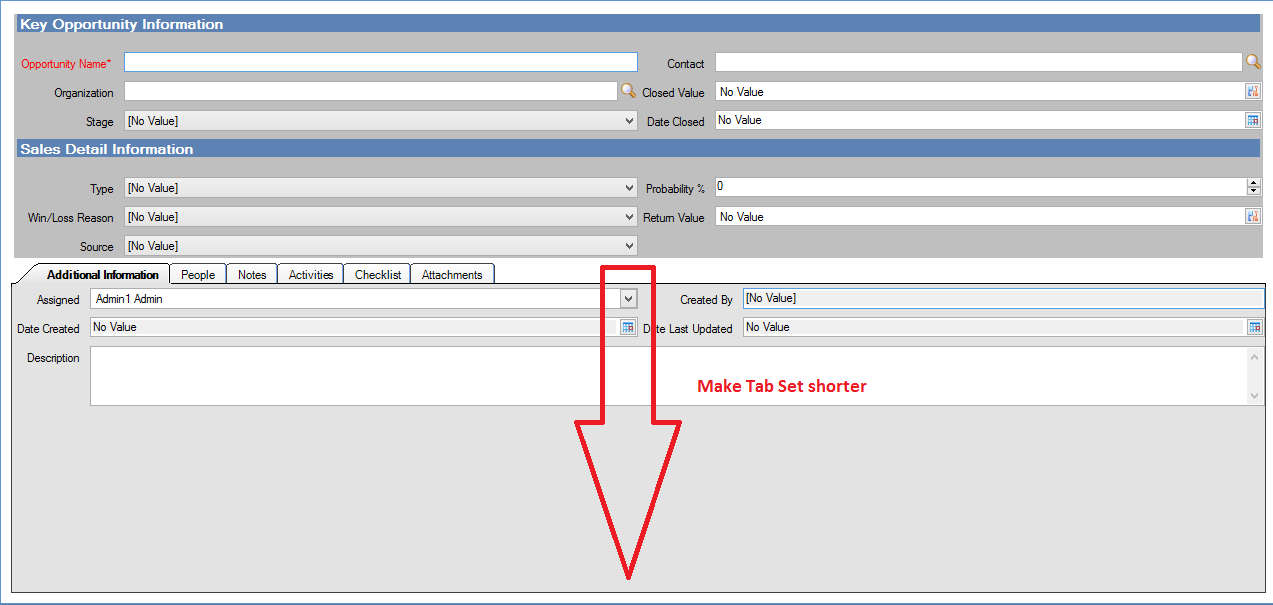 Sometimes the Summary area in the Workspace is too short for all the fields that we have to display, and we don’t want users to be forced to scroll down. Therefore we need to make the Tab Set shorter in order to have more room for the summary.