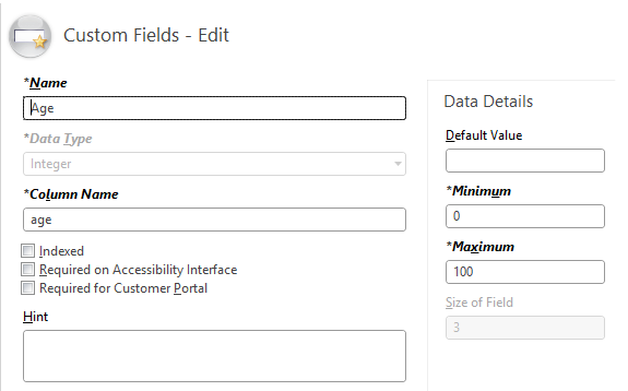 - Step 1: Create a Custom Field (Type: Integer) in the Contact object with the name “Age”, and add the field to the Contact workspace.
