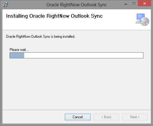 After Outlook integration has been enabled and you have been assigned the correct profile permissions, you must install the necessary components on your workstation. When you install Outlook integration, RightNow CX checks your profile to see which components (email, contact, and task) you have permission to share and synchronize. The installation process adds Share and Sync buttons to your Outlook toolbar.
