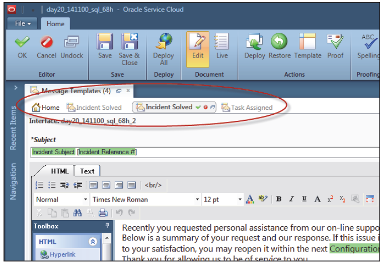 The Nov 2014 release brings a new Message Template editor that uses the sub-tab functionality (introduced in the Aug 2014 release). This means that it is possible for an admin to edit more than one Message Template at the same time.