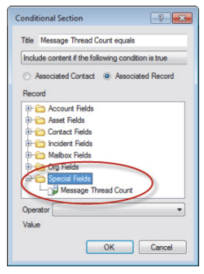 And that is not all for Message Templates. It was already possible to include conditional sections in Message Templates using a variety of fields, but now admins can also define the content to show, based on the number of threads included within the sent message, using the Message Thread Count record located in the “Special Fields” folder (see screenshot below).