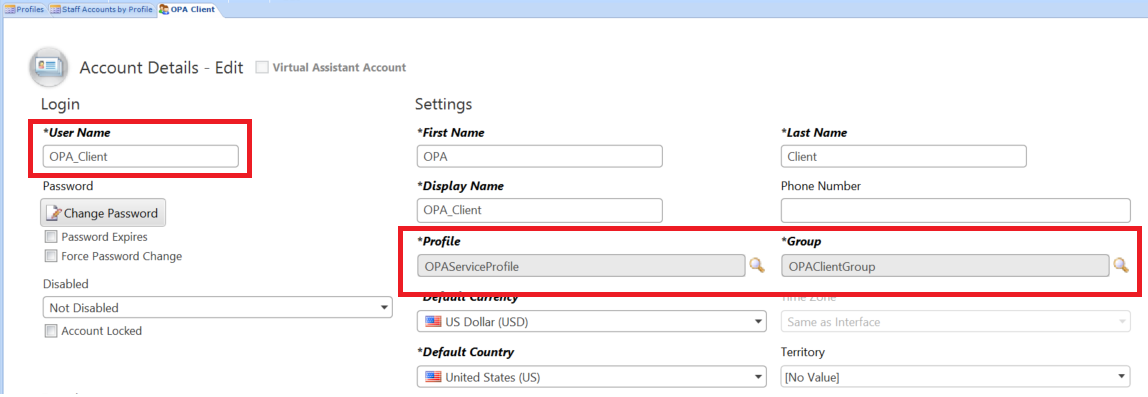The first step is to create a user in Service Cloud named OPA_Client, with permissions in the Public SOAP API area.