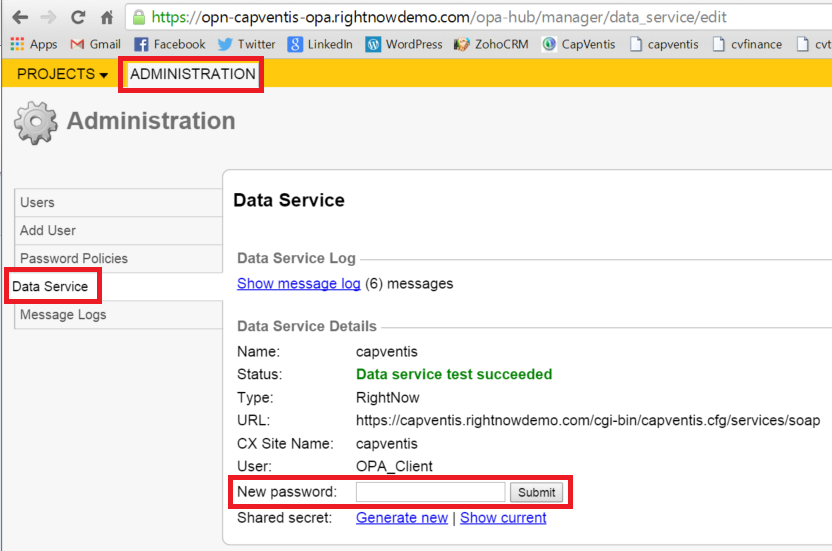The next step is to login to OPA Hub (as an admin) and configure the data service.