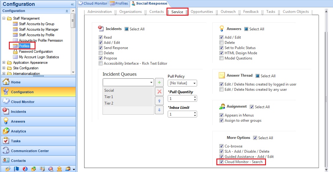 Note: For information about any of these settings, click the setting and refer to the description that appears in the Configuration Editor, and consult the RightNow documentation.