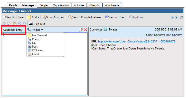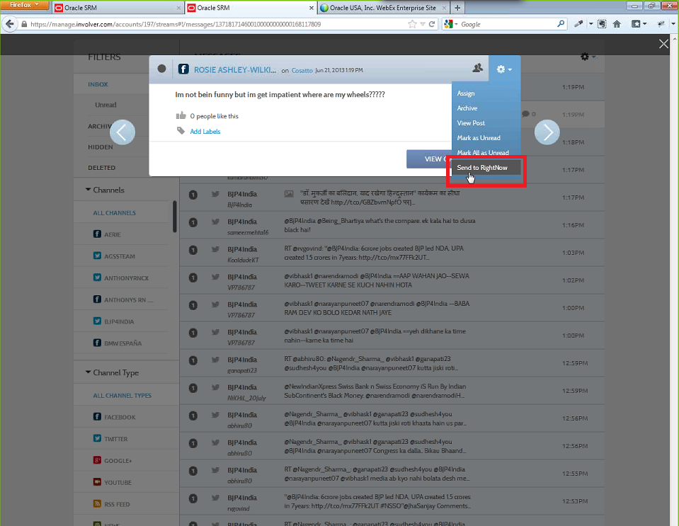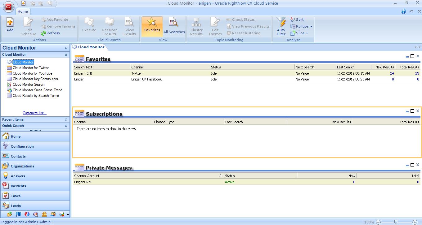 1. Log in to Oracle RightNow CX.
