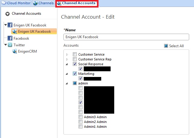 2. Double-click Channel Accounts under Service. The Channel Accounts tree displays.
