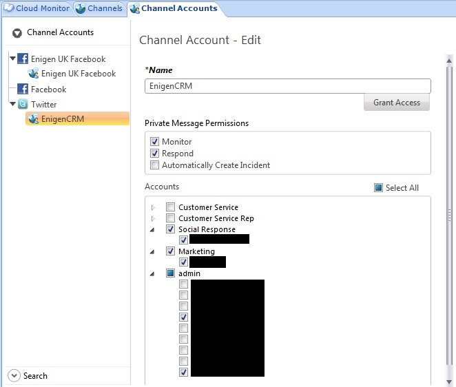Channel accounts enable agents to monitor, automatically create incidents, and send responses publicly or privately from the RightNow Agent desktop to public tweets or private messages sent to your organization’s Twitter account.