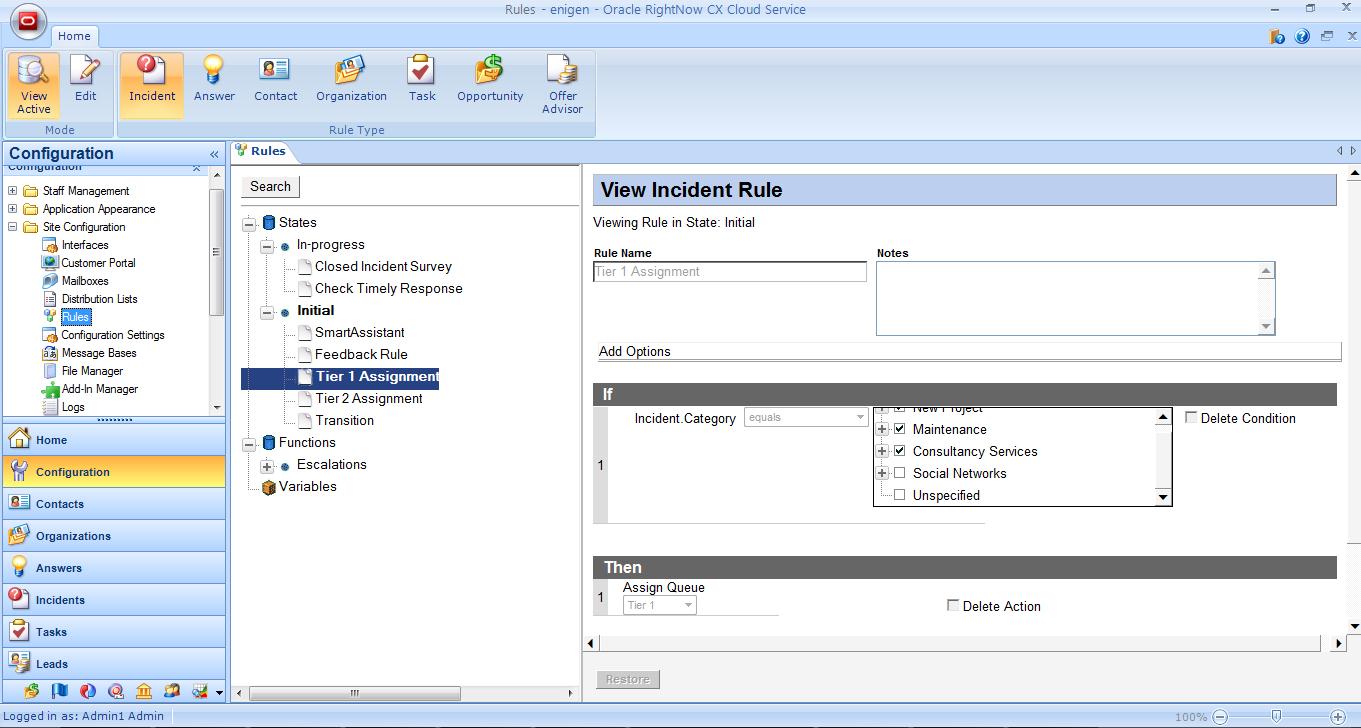 To define the conditions of a target fields from Incident, Contact, and Organization tables can be used. It is also possible to select a unique Purchased Products condition for target rules. This condition is a combination of three conditions – Product, Price, and Date Purchased – all of which must be met.